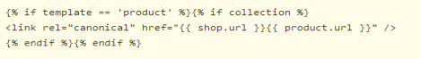 С другой стороны, дублированный контент считается самой большой ошибкой, которую следует упускать из виду при создании и управлении сайтом электронной коммерции. Хотя вы всегда можете убедиться, что не делаете это преднамеренно при публикации блогов, например, есть некоторые технические инциденты, которые приводят к дублированию контента. Shopify предвидела эту проблему, так что вы найдете большинство тем с правильной реализацией rel canonicals. Это предотвратит сканирование страниц, предназначенных для скрытого просмотра. Если вы когда-нибудь наткнулись на страницы вашего интернет-магазина, в которых отсутствует необходимая канонизация, используйте этот шаблон при обновлении кода файла theme.liquid:
